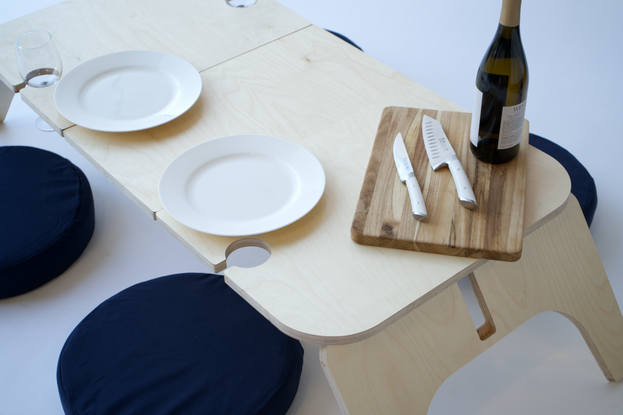 Hewn is an unfolding Japanese-inspired low table sparking grounded gathering anywhere.