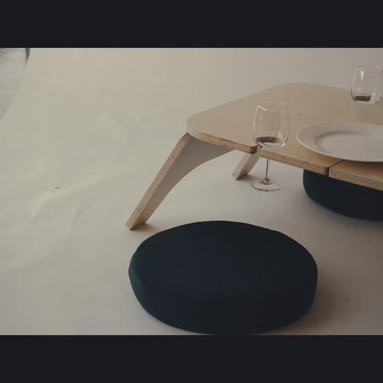 Hewn is a portable gathering system: a low Japanese-inspired table and seats designed for intentional connection anywhere. Crafted from solid hardwood. It combines the elegance of tradition with the practicality of portability.